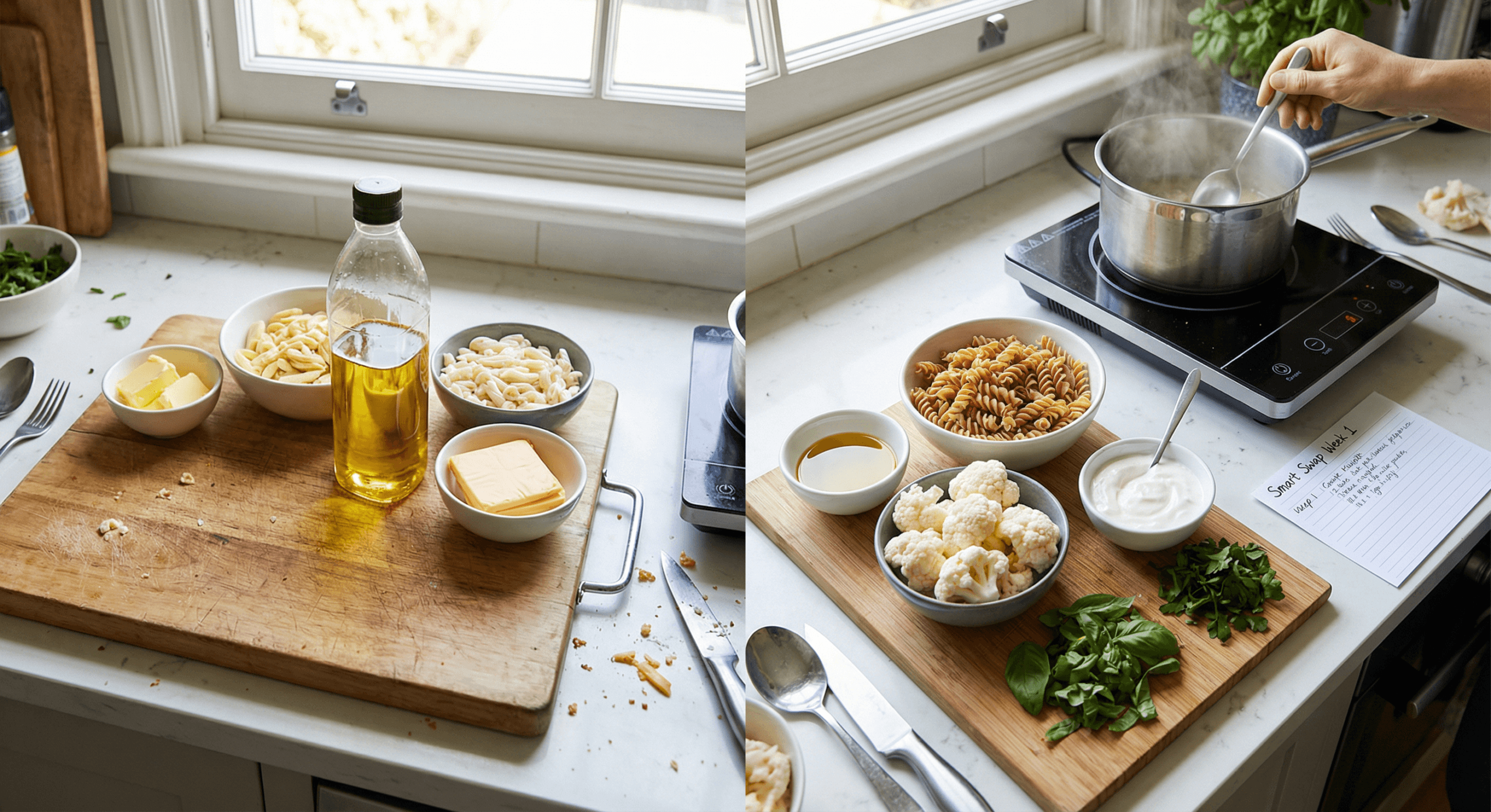 Mac and Cheese → Creamy Mac with Cauliflower or Greek Yogurt